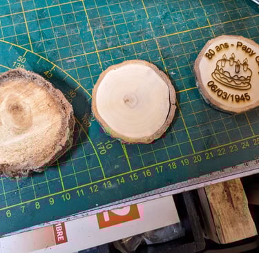 Redécouvrez le charme du bois recyclé grâce à la gravure personnalisée et à la découpe laser. Cette approche écologique donne une seconde vie au bois et confère une touche unique à chaque pièce. Des panneaux et sous-verres personnalisés aux cadres photo et porte-clés, les possibilités sont infinies. Adoptez une démarche durable tout en créant des cadeaux mémorables qui reflètent véritablement votre style.